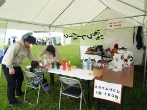 スライムづくりは、子ども達に人気のコーナー。色を選んで、スライムづくりを楽しみました。