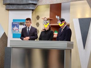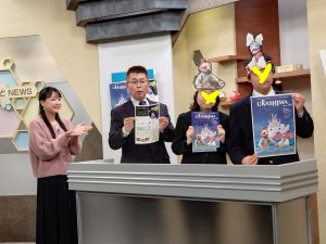 こどもステーション山口「高学年」コース例会パペットシアターゆめみトランク「URASHIMA」の宣伝で、中高生グループのリーダー高校生くんが、山口ケーブルテレビジョンの「まちかどNEWS」に出演♪