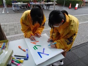 大殿中学校のボランティアの生徒2人も、看板描きや、店番や大活躍してくれました。