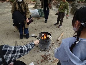 焚火をしたり、焼き芋やマシュマロ、パンを焼いて遊びました。