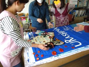 11/28(金)担当ブロックの大内と吉敷地区のお母さんたちが集まって、看板製作。