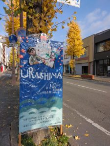 新年明けてすぐの「URASHIMA」公演の立て看板、事務局前に登場です!