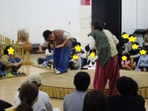 なんと、いきなりステージで相撲!なんで?